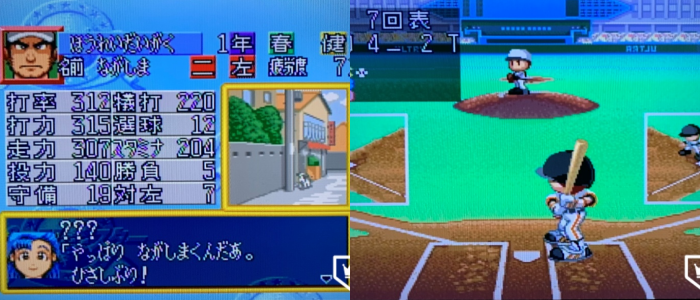 さっそくモードセレクトで「選手育成」を選んでプレイボールだ。令和の長嶋茂雄を作るべく、基本設定は右打ちの三塁手、好きなチームは巨人の「ながしま」で青雲中学入学へ。しかし、とにかく打球が飛ばない。この中学生の非力さも完全再現かと驚愕して説明書を確認すると、ノーマル操作はAボタンで通常スイング、Yボタンでフルスイングがあることが判明して以降はフルスイングを心がけ、長打力をつける筋トレとフリーバッテングを中心に練習メニューを組む。ただし、パワー系トレーニングばかりに励むと、守備力や走力の数値が比例して落ちる仕様なので、走攻守揃った5ツールプレイヤーの育成がかなり難しい。早い段階で打撃に全振りのスラッガー育成へと舵を切る。