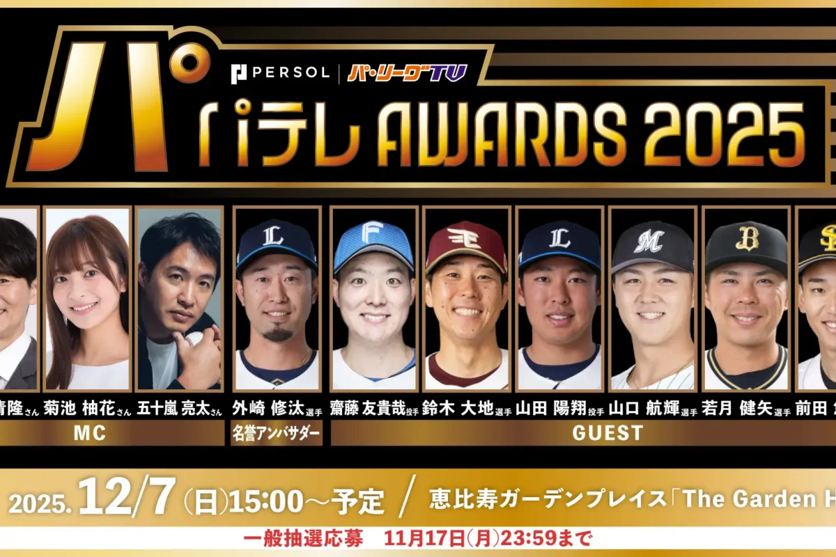 2025年シーズンのパ・リーグを振り返りながら、球団の垣根を越えたそれぞれの選手のトークが楽しめるパテレアワードに今年も要注目だ。