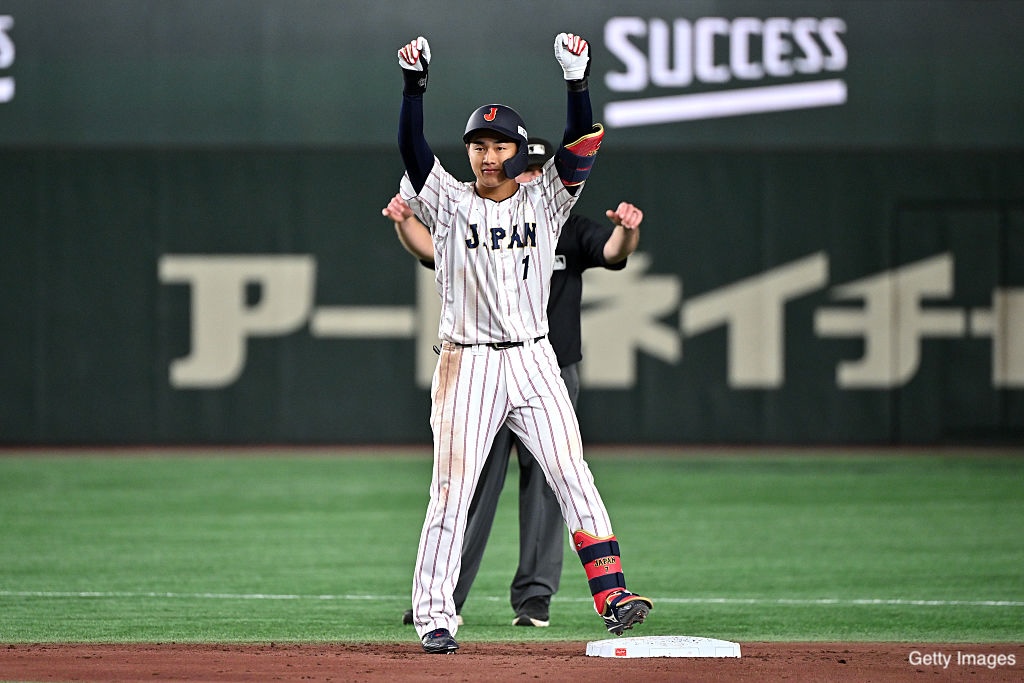 続く5回は2番・野村勇(ソフトバンク)の四球、3番・森下翔太(阪神)の中前打で無死一、二塁とし、代打で登場した岸田行倫(巨人)が3ランを左中間席へ運び勝ち越しに成功。その後も8番・坂本誠志郎(阪神)の適時内野安打、9番・佐々木泰(広島)の左前2点適時打で一挙6点のビッグイニングとした。