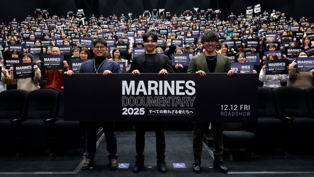 ロッテは19日、TOHOシネマズららぽーと船橋で千葉ロッテマリーンズドキュメンタリー映画「MARINES DOCUMENTARY 2025 すべての敗れざる者たちへ」の舞台挨拶を行い、澤田圭佑投手、高野脩汰投手、廣池康志郎投手が登壇したことを発表した。
