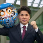 持参したのは、知り合いから贈られた青のダルマ。「新人王や優勝など、目指しているものがいろいろあるので、それを考えながら丸を書きました」と語り、片目にきれいに入った目を自画自賛。「チーム目標、個人目標を達成して、気持ちよくもう片方を入れたいです」と意気込んだ。