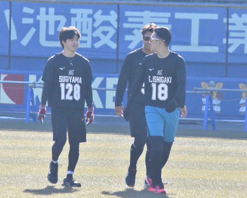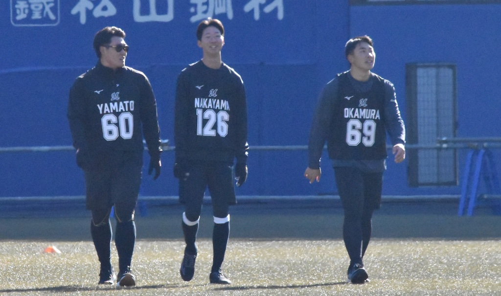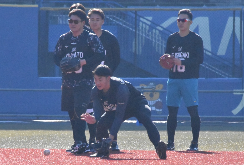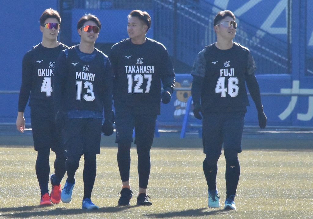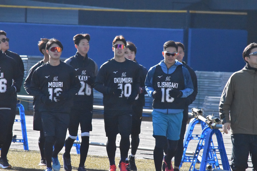 BASEBALL KING 千葉ロッテマリーンズ 【ロッテ】2026年1月10日 新人合同自主トレ パ・リーグ 16時間前 【ロッテ】2026年1月10日 新人合同自主トレ SHARE この記事の画像をもっと見る(全18枚) 全体練習前に説明を受けるロッテの新人選手たち(撮影=岩下雄太) 日付:2026年1月10日 新人合同自主トレ 場所:ZOZOマリンスタジアム 撮影者:岩下雄太(@iwashitayuta) 全体練習前に自己紹介するロッテの新人選手たち(撮影=岩下雄太) 全体練習前に説明を受けるロッテの新人選手たち(撮影=岩下雄太) ランニングするロッテの新人選手たち(撮影=岩下雄太) ランメニューの合間のロッテ・石垣元気(撮影=岩下雄太) ランメニュー合間の左からロッテの杉山諒、櫻井ユウヤ、石垣元気(撮影=岩下雄太) ランメニューの合間の左からロッテの大聖、中山優人、岡村了樹(撮影=岩下雄太) ランメニューの合間の左からロッテ・奥村頼人、毛利海大、高橋快秀、冨士隼斗(撮影=岩下雄太) キャッチボールするロッテ・毛利海大(撮影=岩下雄太) キャッチボールするロッテ・石垣元気(撮影=岩下雄太) キャッチボールするロッテ・中山優人(撮影=岩下雄太) キャッチボールをするロッテ・櫻井ユウヤ(撮影=岩下雄太) キャッチボールするロッテ・高橋快秀(撮影=岩下雄太) キャッチボールするロッテ・奥村頼人(撮影=岩下雄太) キャッチボールするロッテ・冨士隼斗(撮影=岩下雄太) キャッチボールするロッテ・大聖(撮影=岩下雄太) キャッチボールするロッテ・岡村了樹(撮影=岩下雄太) キャッチボールするロッテ・杉山諒(撮影=岩下雄太) ノックを受けるロッテ・石垣元気(撮影=岩下雄太) ノックを受けるロッテ・岡村了樹(撮影=岩下雄太)