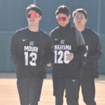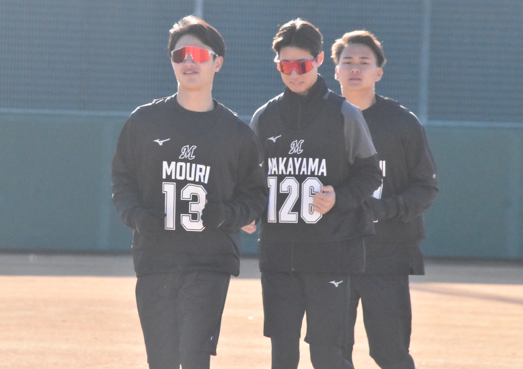 BASEBALL KING 千葉ロッテマリーンズ 【ロッテ】2026年1月14日 新人合同自主トレ 千葉ロッテマリーンズ 2時間前 【ロッテ】2026年1月14日 新人合同自主トレ SHARE この記事の画像をもっと見る(全19枚) ノックが終わり、グラウンド整備をするロッテの新人選手たち(撮影=岩下雄太) 日付:2026年1月14日 新人合同自主トレ 場所:ロッテ浦和 撮影者:岩下雄太(@iwashitayuta) ロッテ・櫻井ユウヤ(撮影=岩下雄太) 前からロッテ・毛利海大、中山優人、高橋快秀(撮影=岩下雄太) ウォーミングアップ中のロッテ・冨士隼斗(撮影=岩下雄太) ウォーミングアップ中のロッテの新人選手たち(撮影=岩下雄太) ダッシュをするロッテ・大聖(撮影=岩下雄太) ダッシュをするロッテ・岡村了樹(右)(撮影=岩下雄太) キャッチボールするロッテ・冨士隼斗(撮影=岩下雄太) キャッチボールするロッテ・毛利海大(撮影=岩下雄太) キャッチボールするロッテ・岡村了樹(撮影=岩下雄太) キャッチボールするロッテ・石垣元気(撮影=岩下雄太) キャッチボールするロッテ・櫻井ユウヤ(撮影=岩下雄太) キャッチボールするロッテ・高橋快秀(撮影=岩下雄太) キャッチボールするロッテ・杉山諒(撮影=岩下雄太) キャッチボールするロッテ・大聖(撮影=岩下雄太) ノックを受けるロッテ・奥村頼人(撮影=岩下雄太) ノックを受けるロッテ・櫻井ユウヤ(撮影=岩下雄太) ノックを受けるロッテ・岡村了樹(撮影=岩下雄太) ノックを受けるロッテ・高橋快秀(撮影=岩下雄太) ノックを受けるロッテ・石垣元気(撮影=岩下雄太) ノックが終わり、グラウンド整備をするロッテの新人選手たち(撮影=岩下雄太)