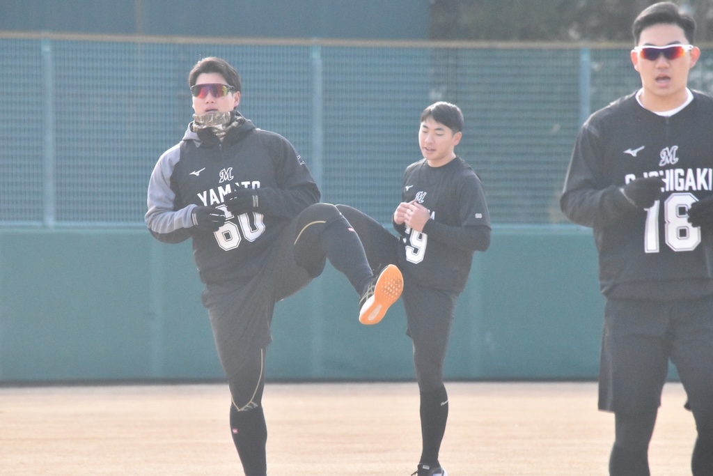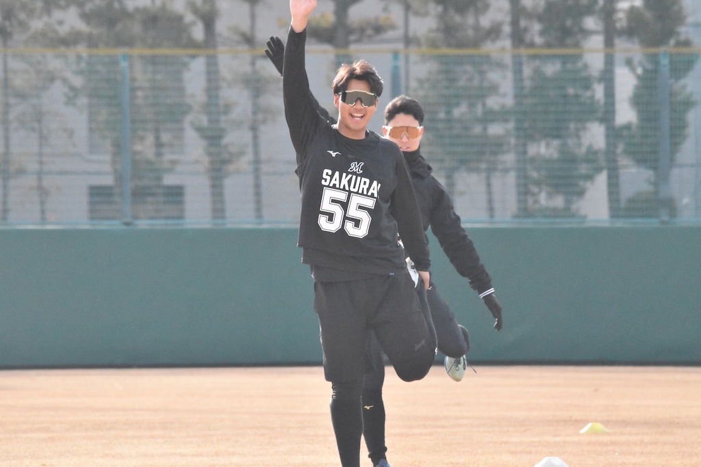 BASEBALL KING ニュース 【ロッテ】2026年1月15日 新人合同自主トレ ニュース 1時間前 【ロッテ】2026年1月15日 新人合同自主トレ SHARE ブルペンで立ち投げを行ったロッテ・大聖(左)と冨士隼斗(右)(撮影=岩下雄太) 日付:2026年1月15日 新人合同自主トレ 場所:ロッテ浦和 撮影者:岩下雄太(@iwashitayuta) 全体練習前のロッテの新人選手達(撮影=岩下雄太) ウォーミングアップ中のロッテ・石垣元気(撮影=岩下雄太) ウォーミングアップ中のロッテ・櫻井ユウヤ(撮影=岩下雄太) ウォーミングアップ中のロッテ・奥村頼人(撮影=岩下雄太) ウォーミングアップ中のロッテ・大聖(撮影=岩下雄太) ウォーミングアップ中のロッテの新人選手達(撮影=岩下雄太) ウォーミングアップ中のロッテの新人選手達(撮影=岩下雄太) ウォーミングアップ中のロッテ・冨士隼斗(撮影=岩下雄太) ウォーミングアップ中のロッテ・高橋快秀(撮影=岩下雄太) ランニングをするロッテの新人選手達(撮影=岩下雄太) ランニングをするロッテの新人選手達(撮影=岩下雄太) ランニングするロッテの岡村了樹(撮影=岩下雄太) ランニング中のロッテ・杉山諒(撮影=岩下雄太) キャッチボールするロッテ・毛利海大(撮影=岩下雄太) キャッチボールするロッテ・大聖(撮影=岩下雄太) キャッチボールするロッテ・奥村頼人(撮影=岩下雄太) キャッチボールするロッテ・石垣元気(撮影=岩下雄太) キャッチボールするロッテ・中山優人(撮影=岩下雄太) キャッチボールするロッテ・高橋快秀(撮影=岩下雄太) キャッチボールするロッテ・杉山諒(撮影=岩下雄太) キャッチボールするロッテ・冨士隼斗(撮影=岩下雄太) ノックを受けるロッテ・櫻井ユウヤ(撮影=岩下雄太) ノックを受けるロッテ・杉山諒(撮影=岩下雄太) ブルペンで立ち投げを行ったロッテ・大和(撮影=岩下雄太) ブルペンで立ち投げを行ったロッテ・冨士隼斗(撮影=岩下雄太) ブルペンで大聖の球を受けたロッテ・岡村了樹(撮影=岩下雄太)