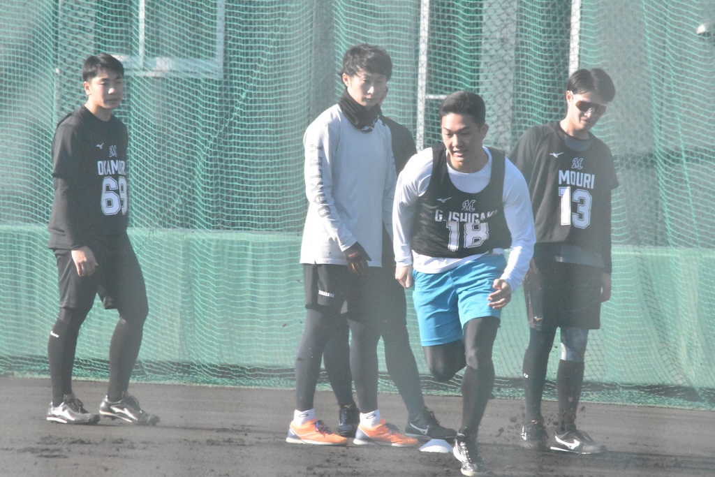 BASEBALL KING ニュース 【ロッテ】2026年1月16日 新人合同自主トレ ニュース 1時間前 【ロッテ】2026年1月16日 新人合同自主トレ SHARE この記事の画像をもっと見る(全24枚) ものすごいジャンプ力を見せるロッテ・石垣元気(撮影=岩下雄太) 日付:2026年1月16日 新人合同自主トレ 場所:ロッテ浦和 撮影者:岩下雄太(@iwashitayuta) ランニングするロッテの新人選手たち(撮影=岩下雄太) ものすごいジャンプ力を見せるロッテ・石垣元気(撮影=岩下雄太) トレーニングを行うロッテの新人選手たち(撮影=岩下雄太) トレーニングを行うロッテの新人選手たち(撮影=岩下雄太) トレーニングを行うロッテの新人選手たち(撮影=岩下雄太) トレーニングを行うロッテの新人選手たち(撮影=岩下雄太) ダッシュするロッテ・毛利海大(撮影=岩下雄太) ダッシュするロッテ・石垣元気(撮影=岩下雄太) ダッシュするロッテ・奥村頼人(撮影=岩下雄太) ダッシュするロッテ・櫻井ユウヤ(撮影=岩下雄太) キャッチボールするロッテ・櫻井ユウヤ(撮影=岩下雄太) キャッチボールするロッテ・冨士隼斗(撮影=岩下雄太) キャッチボールするロッテ・中山優人(撮影=岩下雄太) キャッチボールするロッテ・奥村頼人(撮影=岩下雄太) キャッチボールするロッテ・杉山諒(撮影=岩下雄太) キャッチボールするロッテ・毛利海大(撮影=岩下雄太) キャッチボールするロッテ・岡村了樹(撮影=岩下雄太) キャッチボールするロッテ・石垣元気(撮影=岩下雄太) ノックを受けるロッテ・杉山諒(撮影=岩下雄太) ノックを受けるロッテ・櫻井ユウヤ(撮影=岩下雄太) ノックを受けるロッテ・中山優人(撮影=岩下雄太) ノックを受けるロッテ・高橋快秀(撮影=岩下雄太) ノックを受けるロッテ・石垣元気(撮影=岩下雄太) ノックを受けるロッテ・岡村了樹(撮影=岩下雄太) ノックを受けるロッテ・大聖(撮影=岩下雄太)