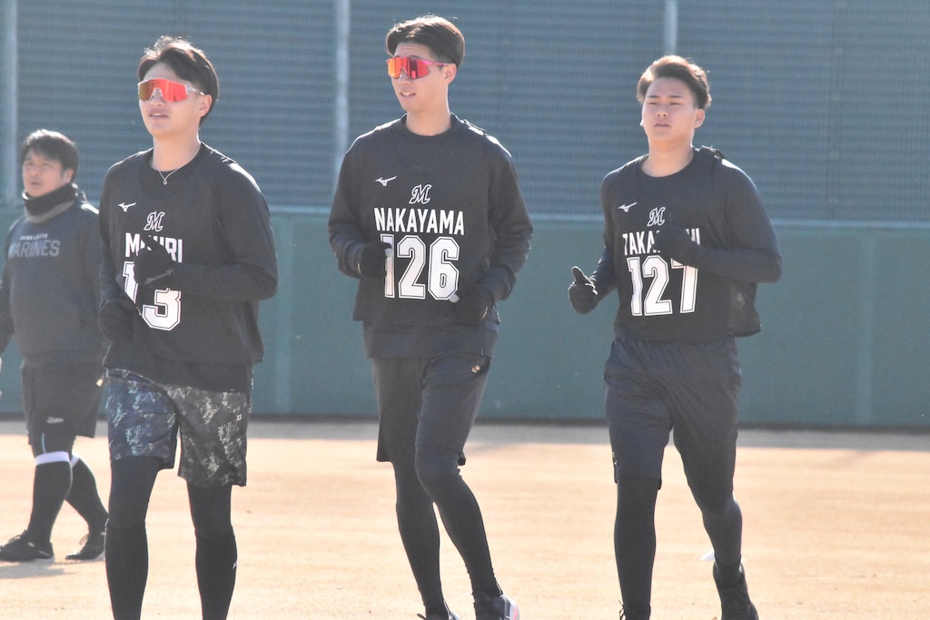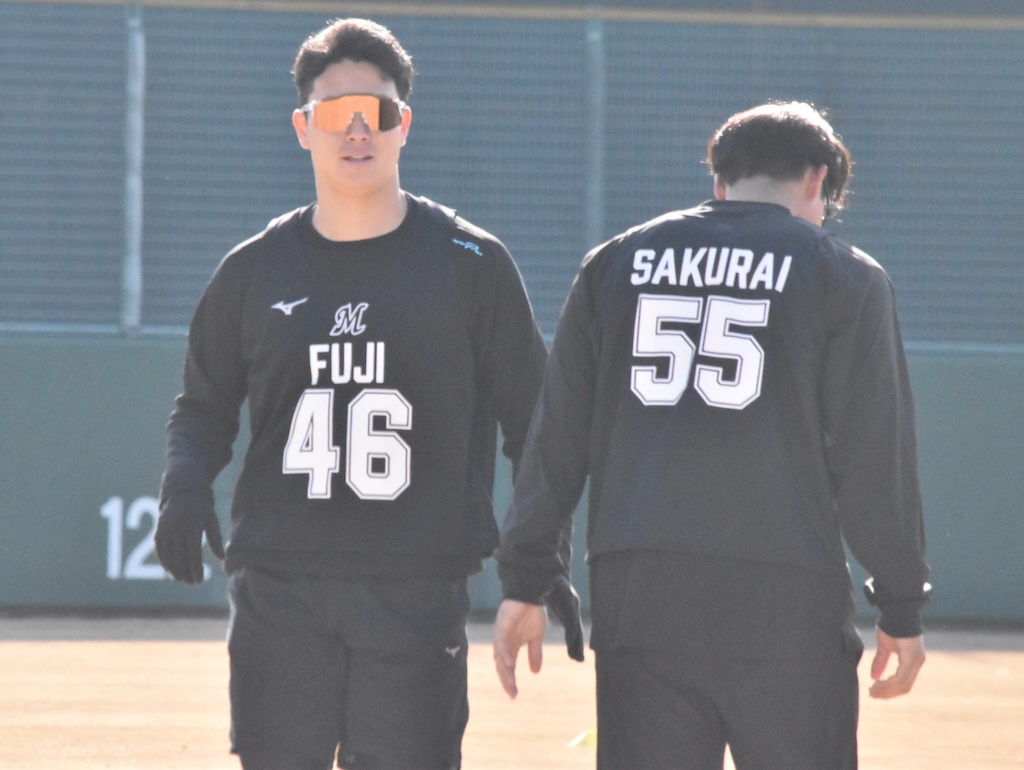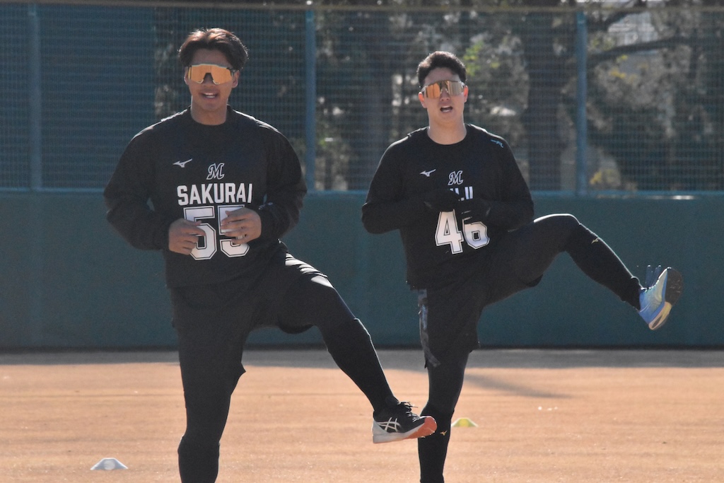 BASEBALL KING 千葉ロッテマリーンズ 【ロッテ】2026年1月18日 新人合同自主トレ パ・リーグ 1時間前 【ロッテ】2026年1月18日 新人合同自主トレ SHARE この記事の画像をもっと見る(全22枚) ブルペンでの投球練習後に話し合うロッテ・岡村了樹(左)と冨士隼斗(右)(撮影=岩下雄太) 日付:2026年1月18日 新人合同自主トレ 場所:ロッテ浦和 撮影者:岩下雄太(@iwashitayuta) 全体練習前のロッテの新人選手たち(撮影=岩下雄太) ウォーミングアップ中のロッテの新人選手たち(撮影=岩下雄太) ウォーミングアップ中のロッテの新人選手たち(撮影=岩下雄太) ロッテ・冨士隼斗(左)と櫻井ユウヤ(右)(撮影=岩下雄太) ウォーミングアップ中のロッテの新人選手たち(撮影=岩下雄太) ウォーミングアップ中のロッテの新人選手たち(撮影=岩下雄太) ウォーミングアップ中のロッテの新人選手たち(撮影=岩下雄太) ウォーミングアップ中のロッテの新人選手たち(撮影=岩下雄太) ウォーミングアップ中のロッテ・櫻井ユウヤ(左)、冨士隼斗(右)(撮影=岩下雄太) ダッシュするロッテ・高橋快秀(撮影=岩下雄太) キャッチボールするロッテ・石垣元気(撮影=岩下雄太) キャッチボールするロッテ・奥村頼人(撮影=岩下雄太) キャッチボールするロッテ・中山優人(撮影=岩下雄太) キャッチボールするロッテ・岡村了樹(撮影=岩下雄太) キャッチボールするロッテ・大聖(撮影=岩下雄太) キャッチボールするロッテ・櫻井ユウヤ(撮影=岩下雄太) キャッチボールするロッテ・杉山諒(撮影=岩下雄太) キャッチボールするロッテ・冨士隼斗(撮影=岩下雄太) ブルペンで投球練習するロッテ・大聖(撮影=岩下雄太) ブルペンで投球練習するロッテ・冨士隼斗(撮影=岩下雄太) ブルペンで投球練習するロッテ・毛利海大(撮影=岩下雄太) ブルペンでの投球練習後に話し合うロッテ・岡村了樹(左)と冨士隼斗(右)(撮影=岩下雄太) センターのポジションでノックを受けたロッテ・杉山諒(撮影=岩下雄太)