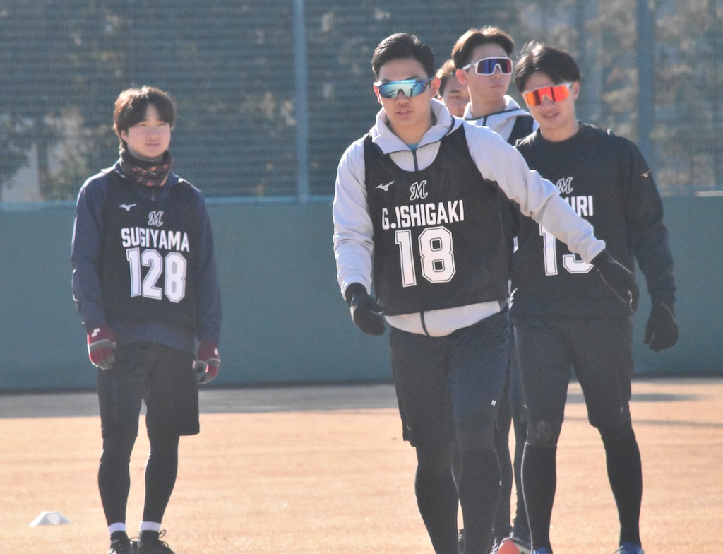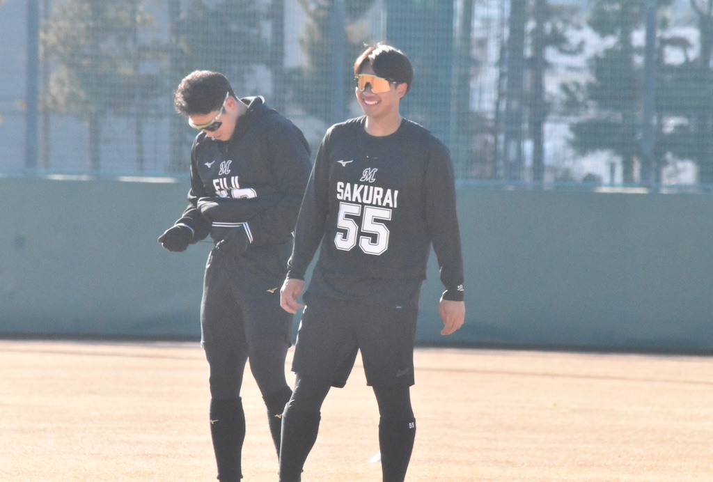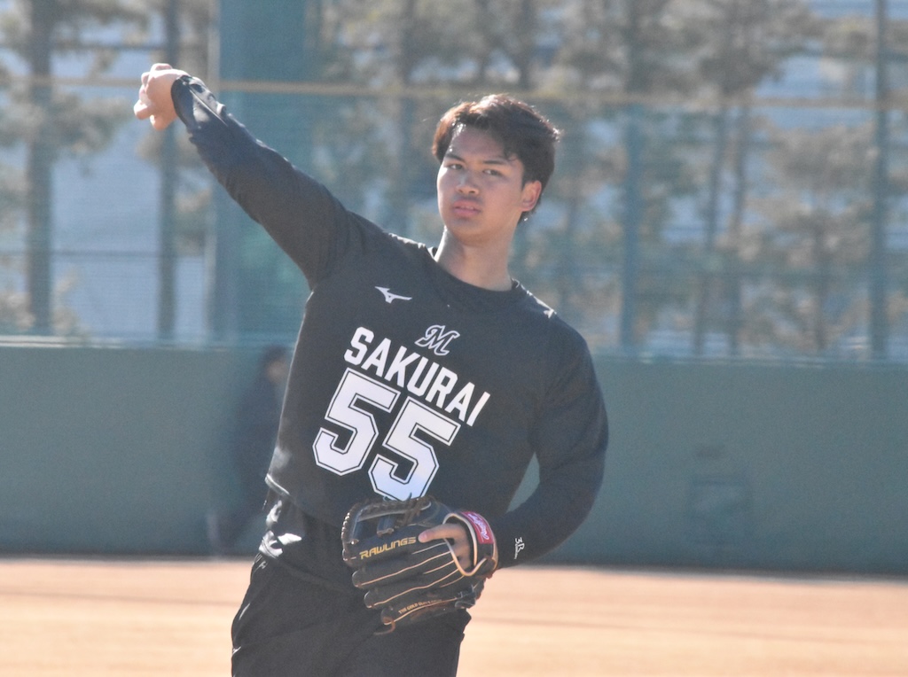 BASEBALL KING 千葉ロッテマリーンズ 【ロッテ】2026年1月24日 新人合同自主トレ パ・リーグ 1時間前 【ロッテ】2026年1月24日 新人合同自主トレ SHARE この記事の画像をもっと見る(全19枚) ブルペンで捕手を座らせて投げ込みを行ったロッテ・毛利海大(撮影=岩下雄太) 日付:2026年1月24日 新人合同自主トレ 場所:ロッテ浦和 撮影者:岩下雄太(@iwashitayuta) ウォーミングアップ中のロッテ・櫻井ユウヤ(撮影=岩下雄太) ウォーミングアップ中のロッテの新人選手たち(撮影=岩下雄太) ウォーミングアップ中のロッテ・奥村頼人(撮影=岩下雄太) ダッシュするロッテ・冨士隼斗(撮影=岩下雄太) ダッシュするロッテ・高橋快秀(撮影=岩下雄太) 走塁練習するロッテ・杉山諒(撮影=岩下雄太) 走塁練習するロッテ・櫻井ユウヤ(撮影=岩下雄太) 走塁練習するロッテ・岡村了樹(撮影=岩下雄太) キャッチボールするロッテ・奥村頼人(撮影=岩下雄太) キャッチボールするロッテ・櫻井ユウヤ(撮影=岩下雄太) キャッチボールするロッテ・中山優人(撮影=岩下雄太) キャッチボールするロッテ・大聖(撮影=岩下雄太) キャッチボールするロッテ・石垣元気(撮影=岩下雄太) キャッチボールするロッテ・岡村了樹(撮影=岩下雄太) サードでノックを受けるロッテ・櫻井ユウヤ(撮影=岩下雄太) センターでノックを受けるロッテ・杉山諒(撮影=岩下雄太) ブルペンで捕手を座らせて投げ込みを行ったロッテ・毛利海大(撮影=岩下雄太) ブルペンで投球練習するロッテ・大聖(撮影=岩下雄太) ブルペンで投球練習するロッテ・冨士隼斗(撮影=岩下雄太) ブルペンでロッテ・冨士隼斗の球を受ける岡村了樹(撮影=岩下雄太)