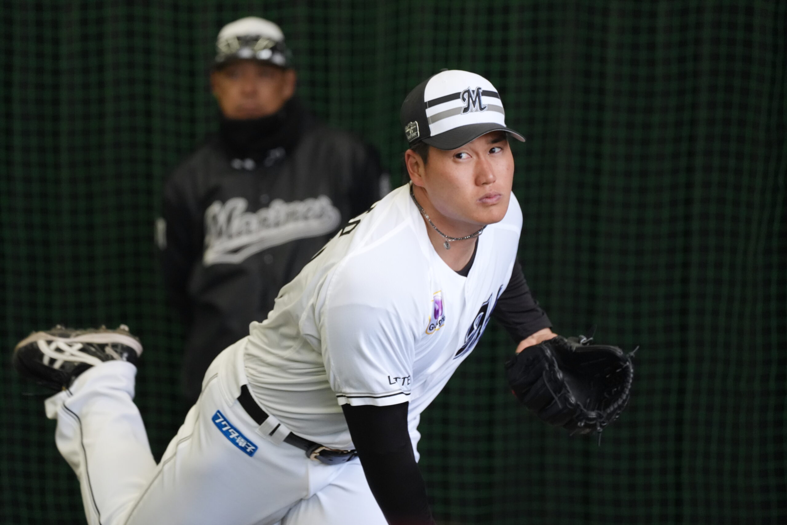 BASEBALL KING ニュース 【ロッテ】2026年2月8日 都城春季キャンプ 【写真・4枚目】【ロッテ】2026年2月8日 都城春季キャンプ パ・リーグ 【写真・4枚目】【ロッテ】2026年2月8日 都城春季キャンプ SHARE ブルペンで投球練習を行ったロッテ・坂本光士郎 この画像の記事を読む