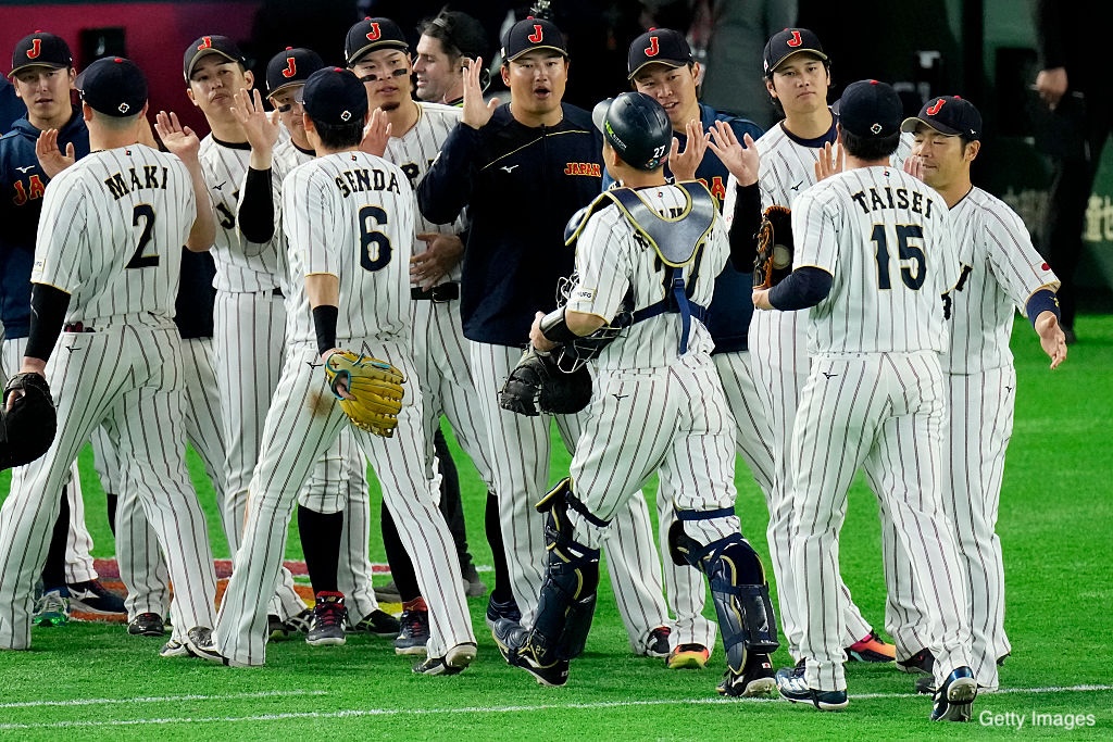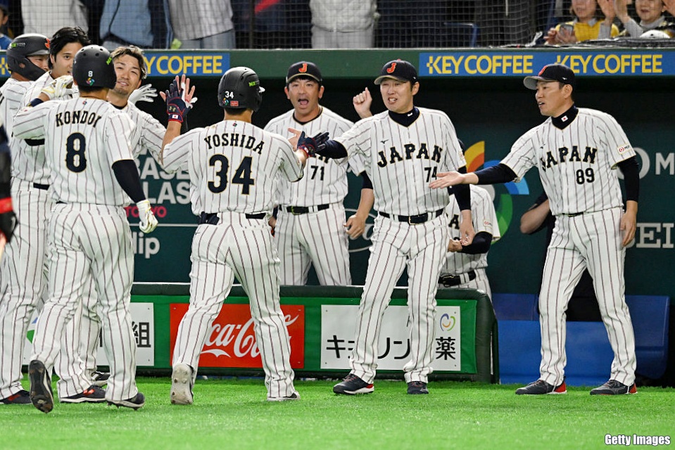 1点リードで迎えた8回は、代走・周東佑京(ソフトバンク)の二盗成功などで一死三塁の好機を作り、代打・佐藤輝明(阪神)の左越え適時二塁打で3点目。なおも満塁で2番・鈴木誠也(カブス)が押し出し四球を選び4-1とリードを広げた。