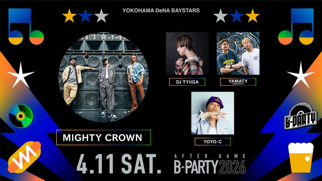 DeNAは30日、4月11日と12日の広島戦の試合終了後グラウンド開放イベント「AFTER GAME B-PARTY」に出演する全アーティストを決定したことを発表した。