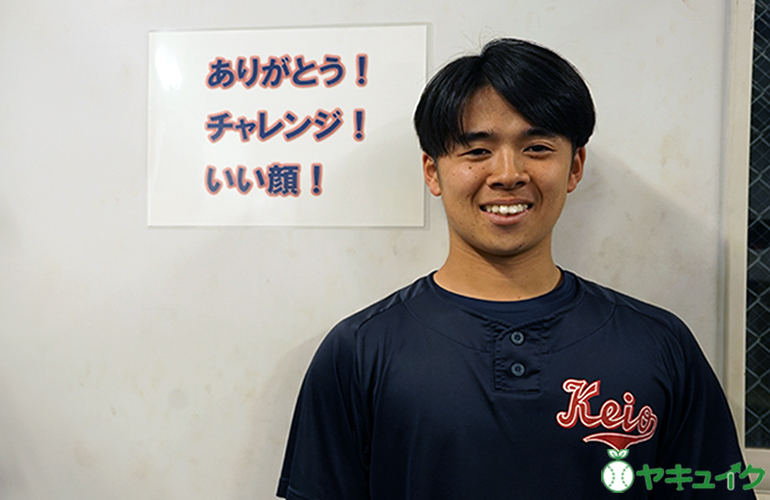中学3年に上がるときにテレビで見た、センバツでの仙台育英戦がきっかけです。0−1で負けていたんですけど「まだいけるぞ!」という選手達の前向きでポジティブな感じが見ていて良いなと思いました。そういったチームの雰囲気であったリ、楽しそうに野球をやっているところが良いな、自分もここでやってみたいなと思って、それで慶応に行きたいと思いました。